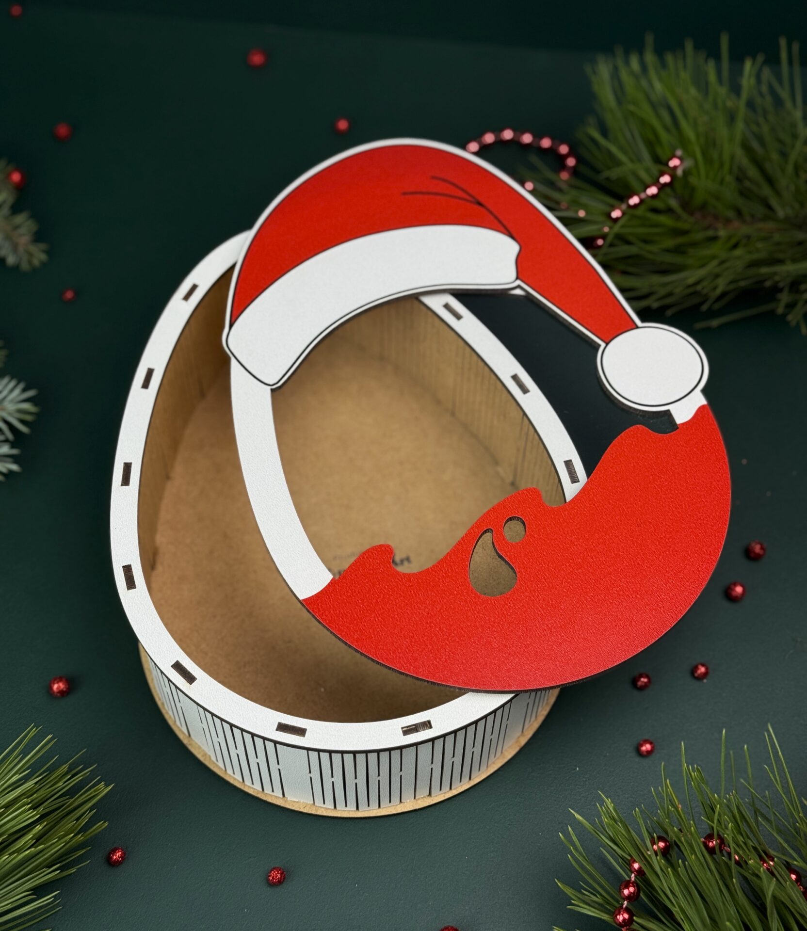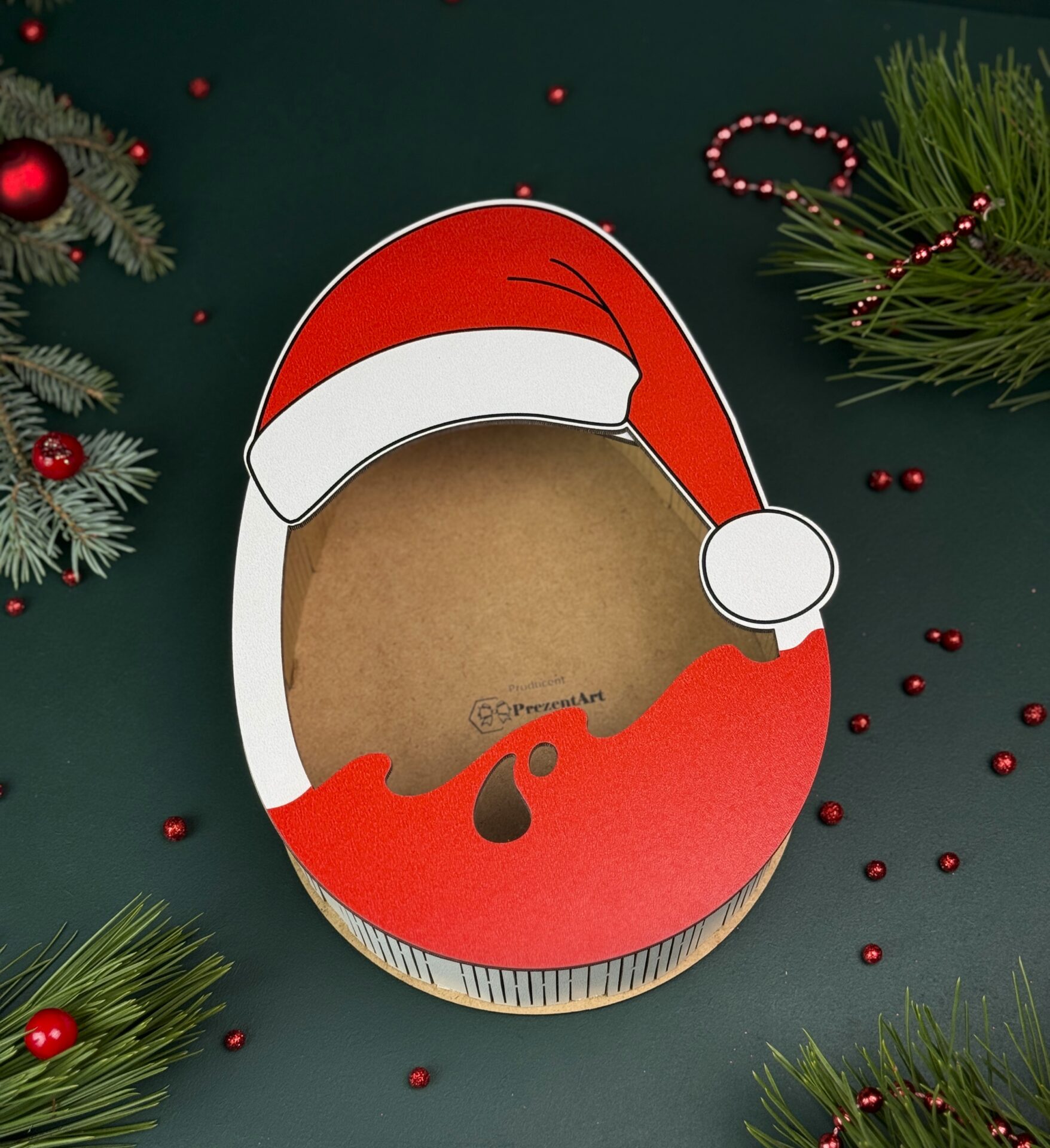 Świąteczne pudełko w kształcie jajka z czapką Mikołaja – idealne na słodki upominek lub dekorację 🎁🎅